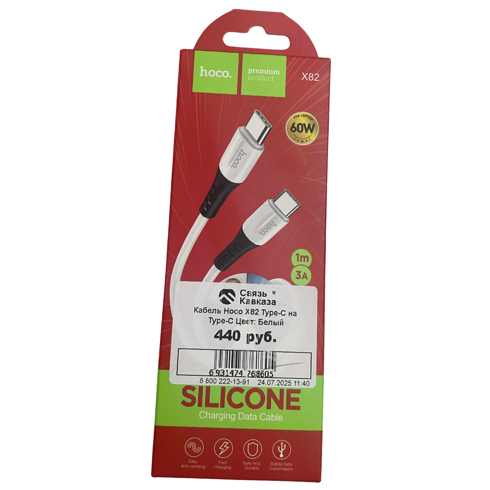 Кабель Type-C-Type-C Hoco X82 60W 100см 3A white, 206149