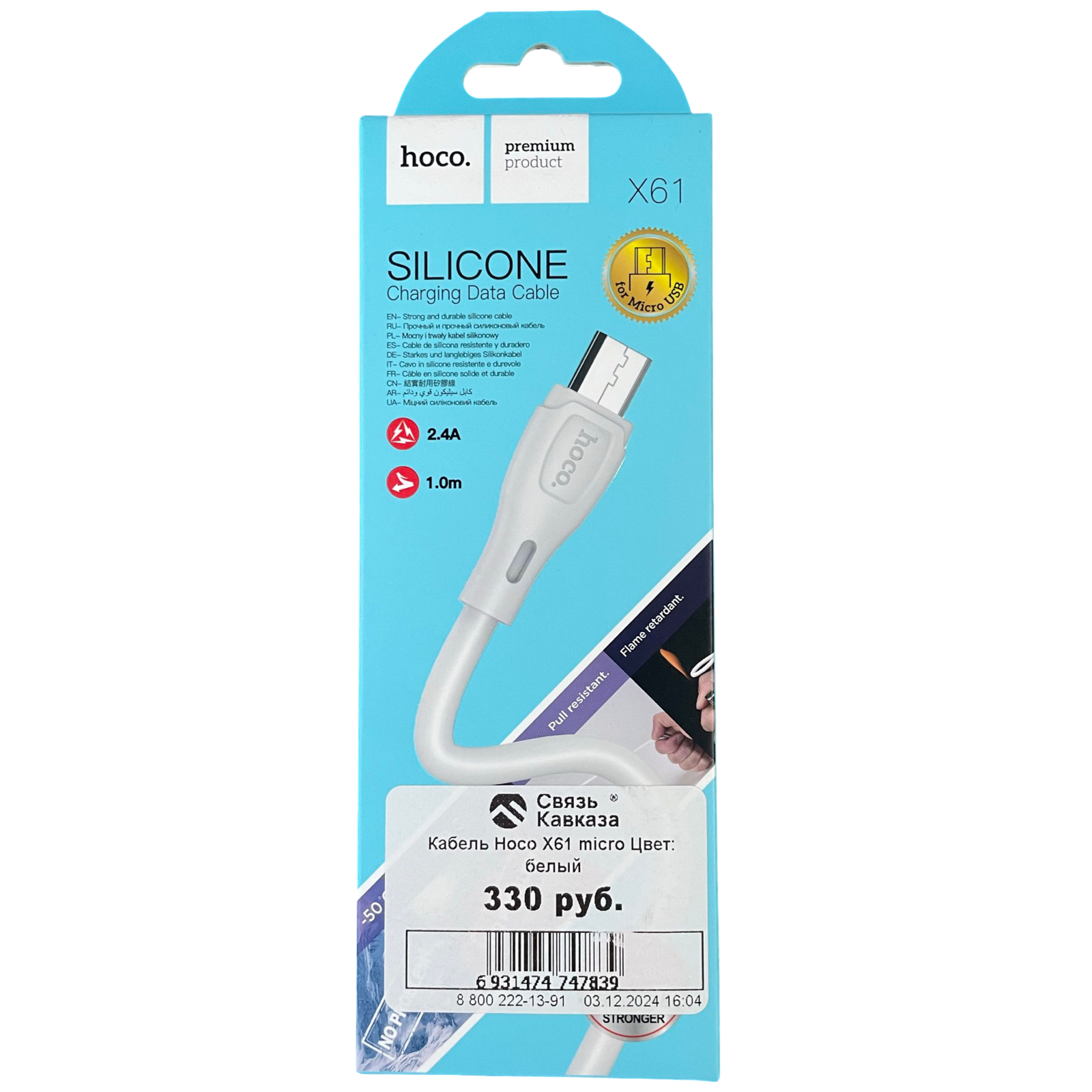 Кабель USB-micro USB Hoco X61 Ultimate 100см 2.4A white, 206159