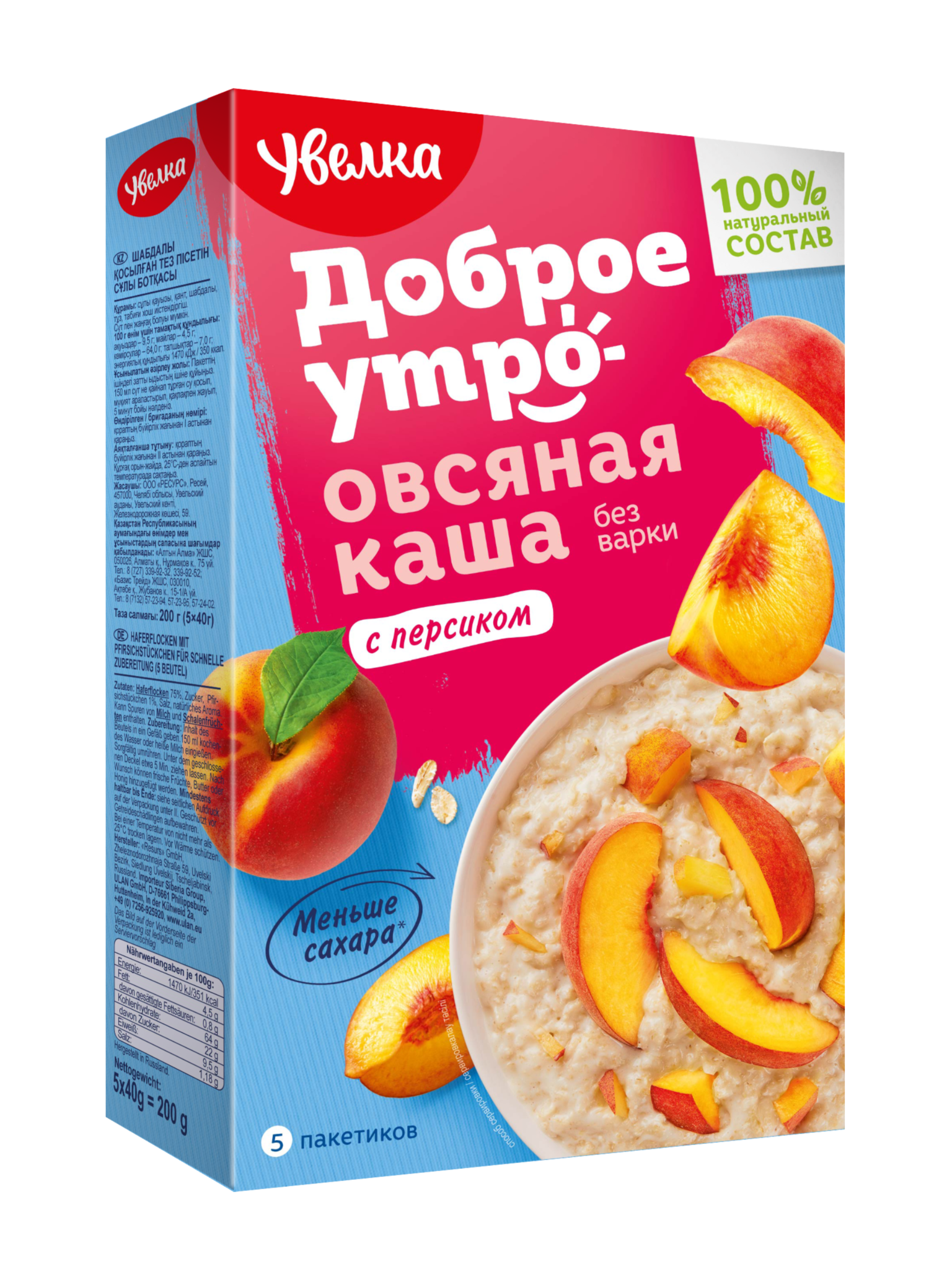 Каша быстрого приготовления овсяная с персиком не нужно варить Увелка 200г
