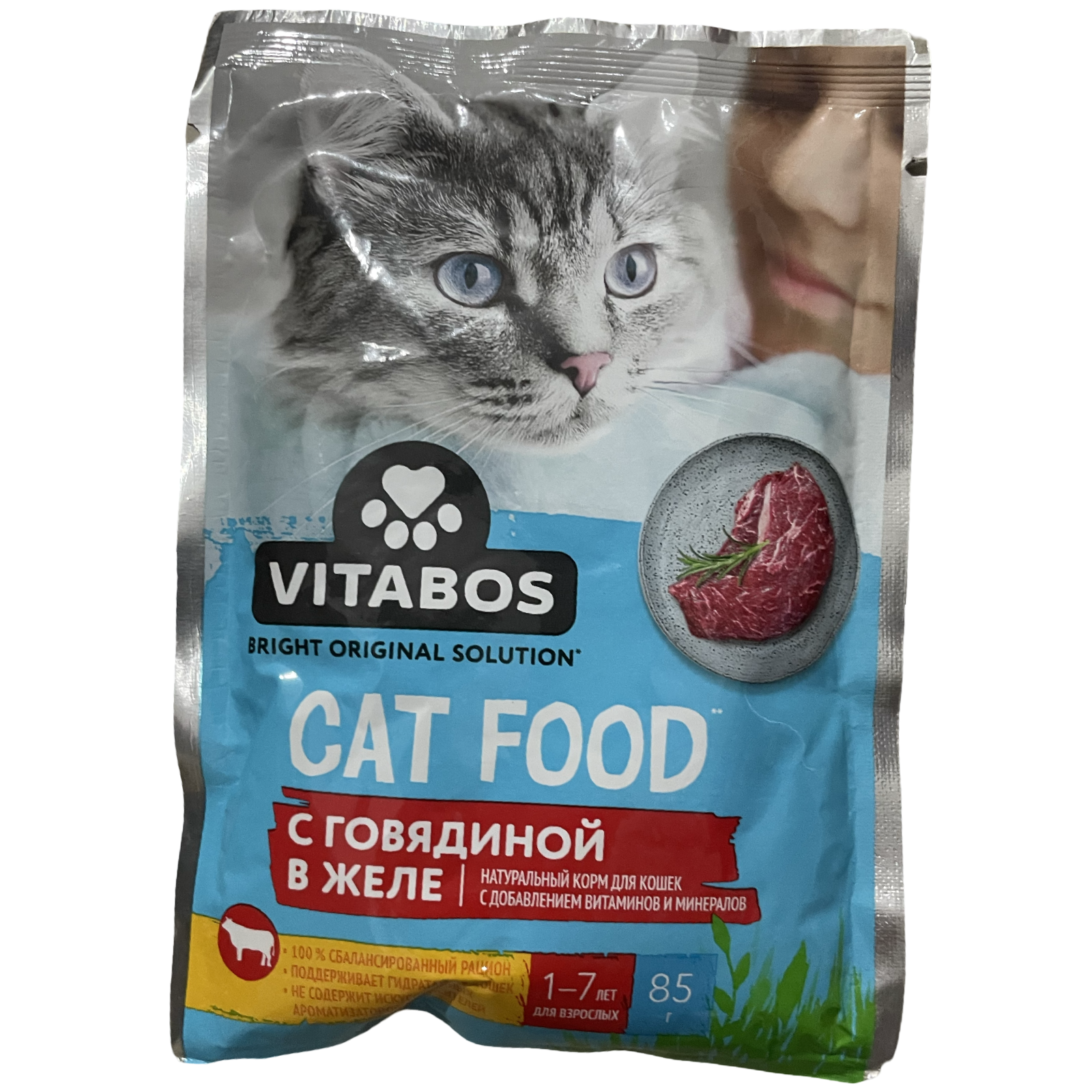 Корм для кошек Vitabos с говядиной в желе 85гр