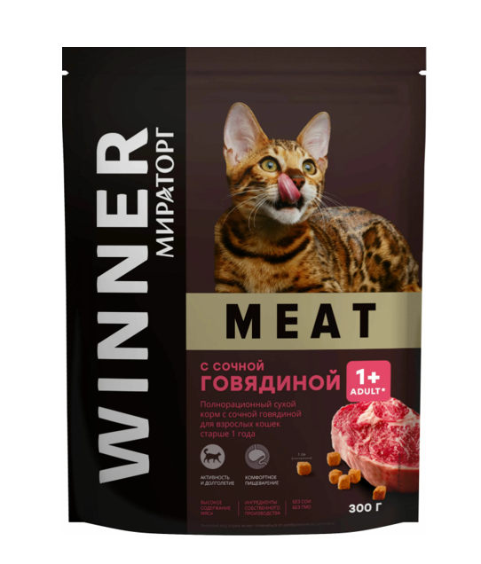Корм сухой д/кошек WINNER с сочной говядиной Мираторг 300г