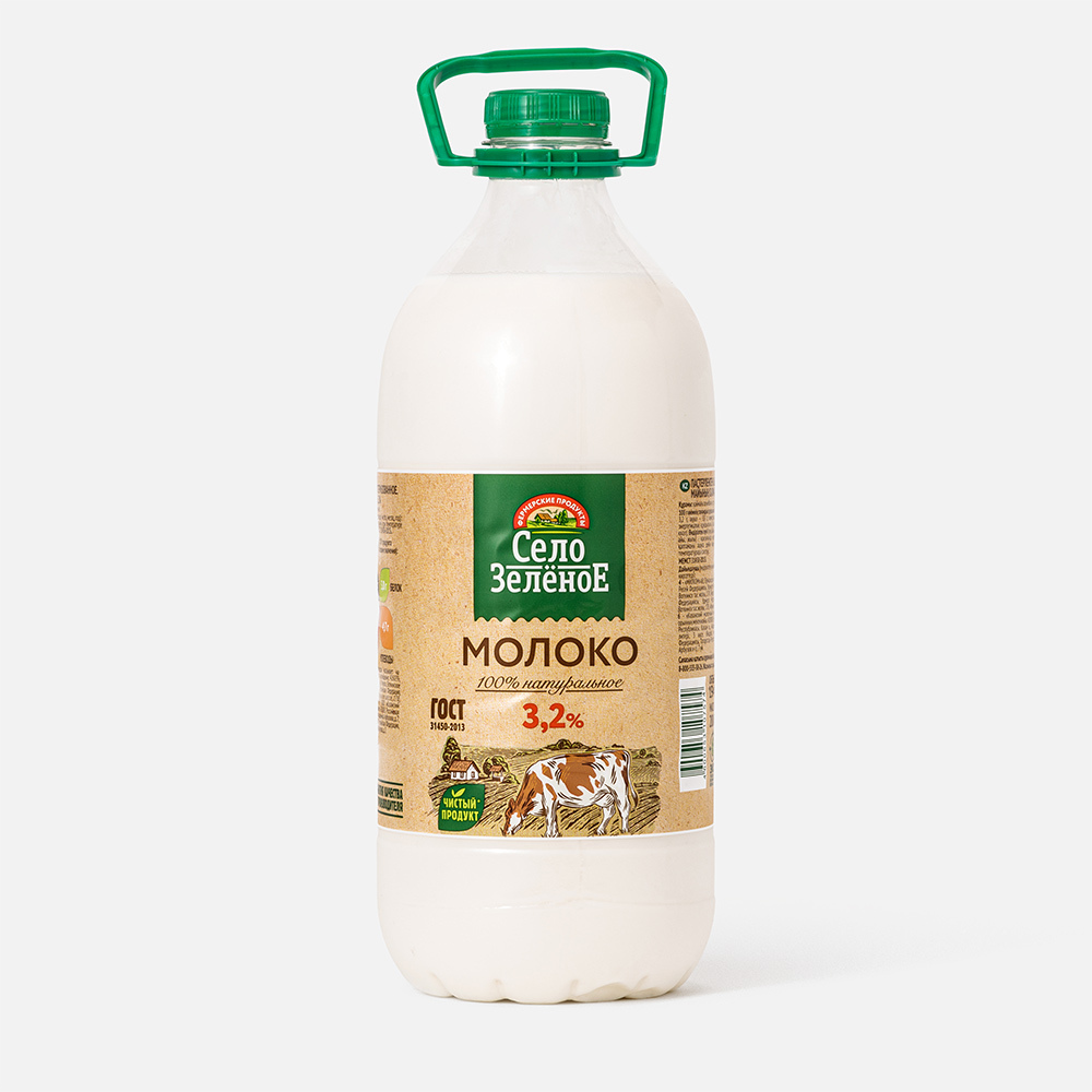 Молоко Село Зеленое пастеризованное 3.2%, 2кг