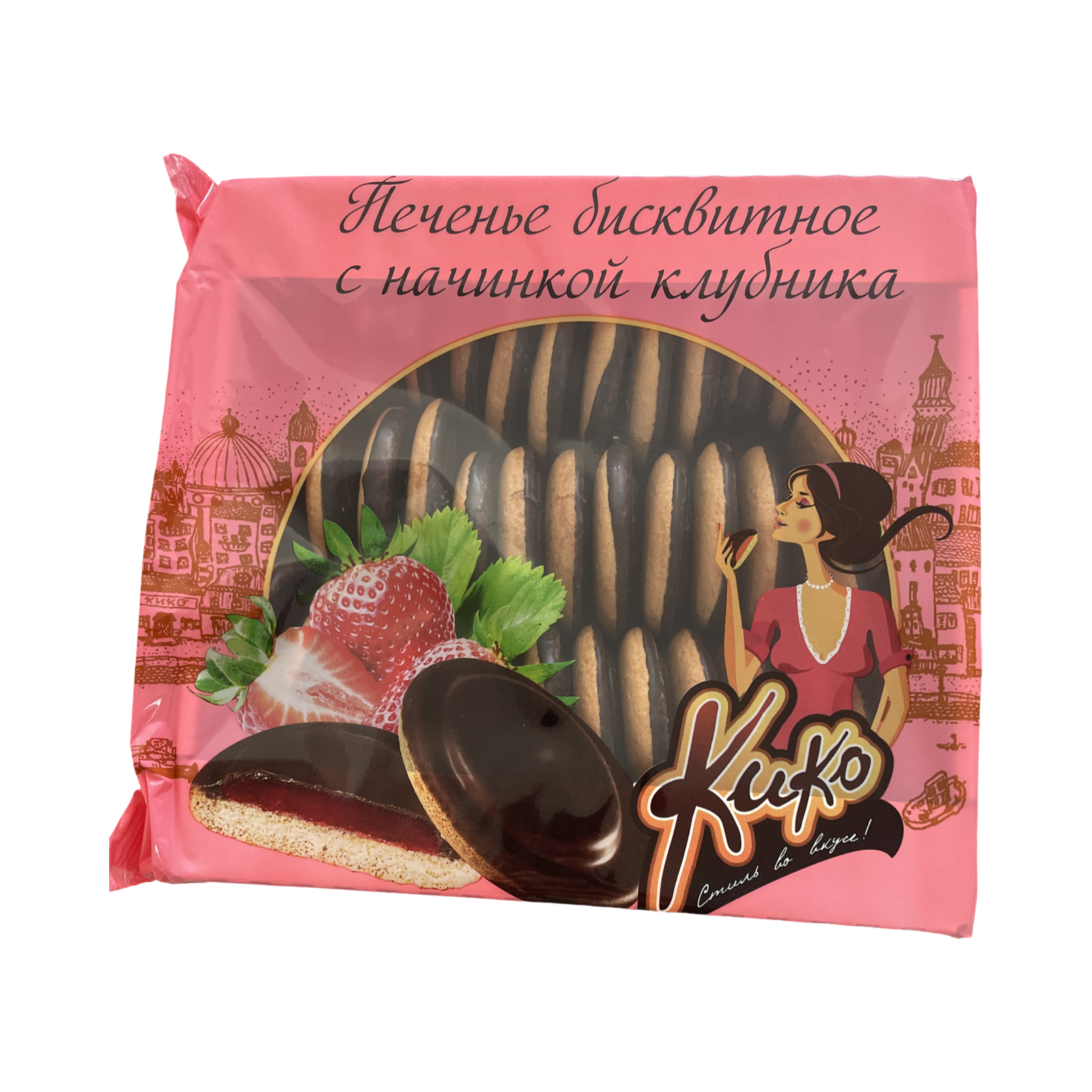 Печенье бисквитное глазированное с начинкой клубника в темной глазури, КиКо, 600г