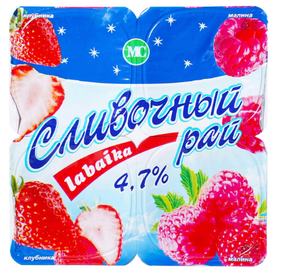 Продукт йогуртный пастеризованный "Сливочный рай Labaika" Клубника / Малина, 0.095кг