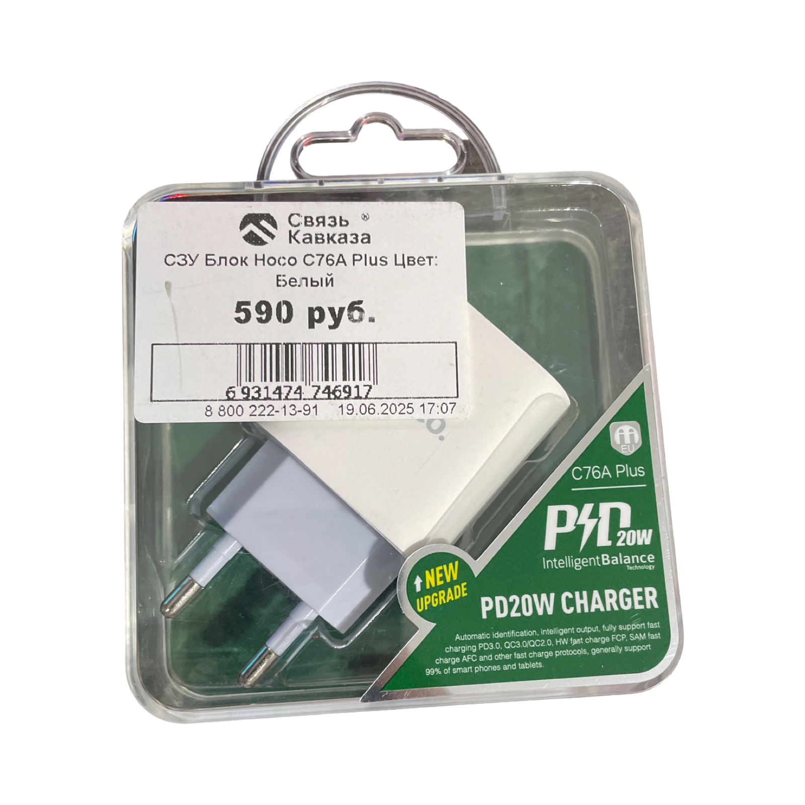 Сетевое зарядное устройство Hoco C76A Plus Speed 1xUSB-C, 3A, 20W, белый
