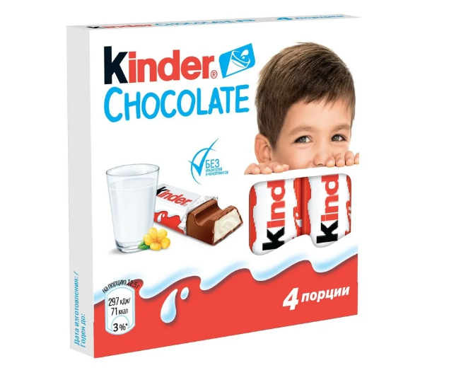 Шоколад молочный Kinder с молочной начинкой 4 порции, 50г
