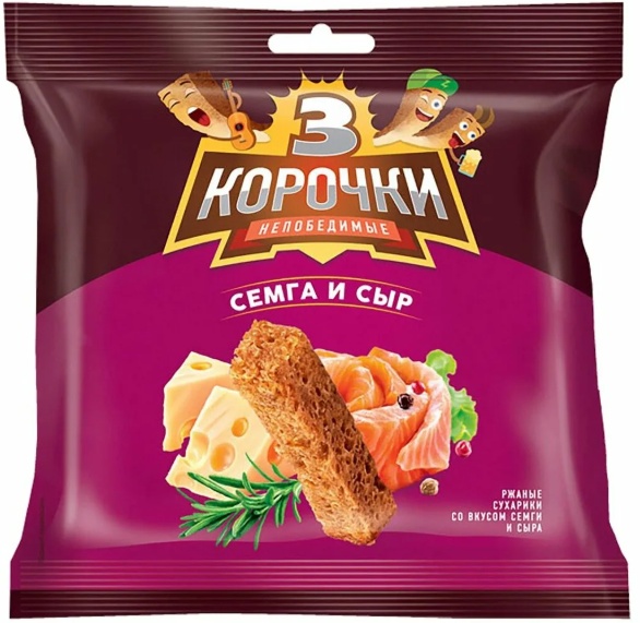 Сухарики ржаные 3 Корочки со вкусом семги и сыра, 40г