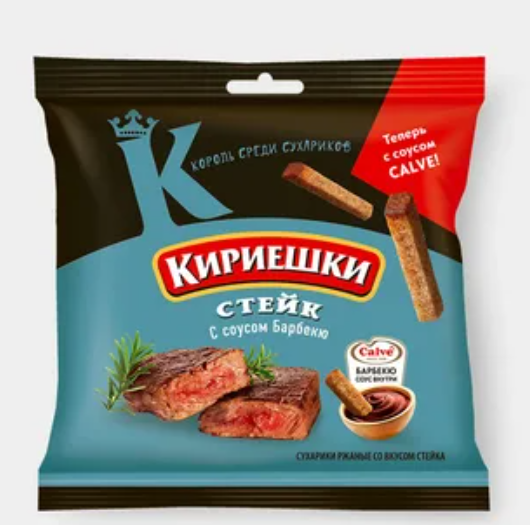 Сухарики ржаные Кириешки со вкусом Стейка и соусом барбекю, 60г + 25мл