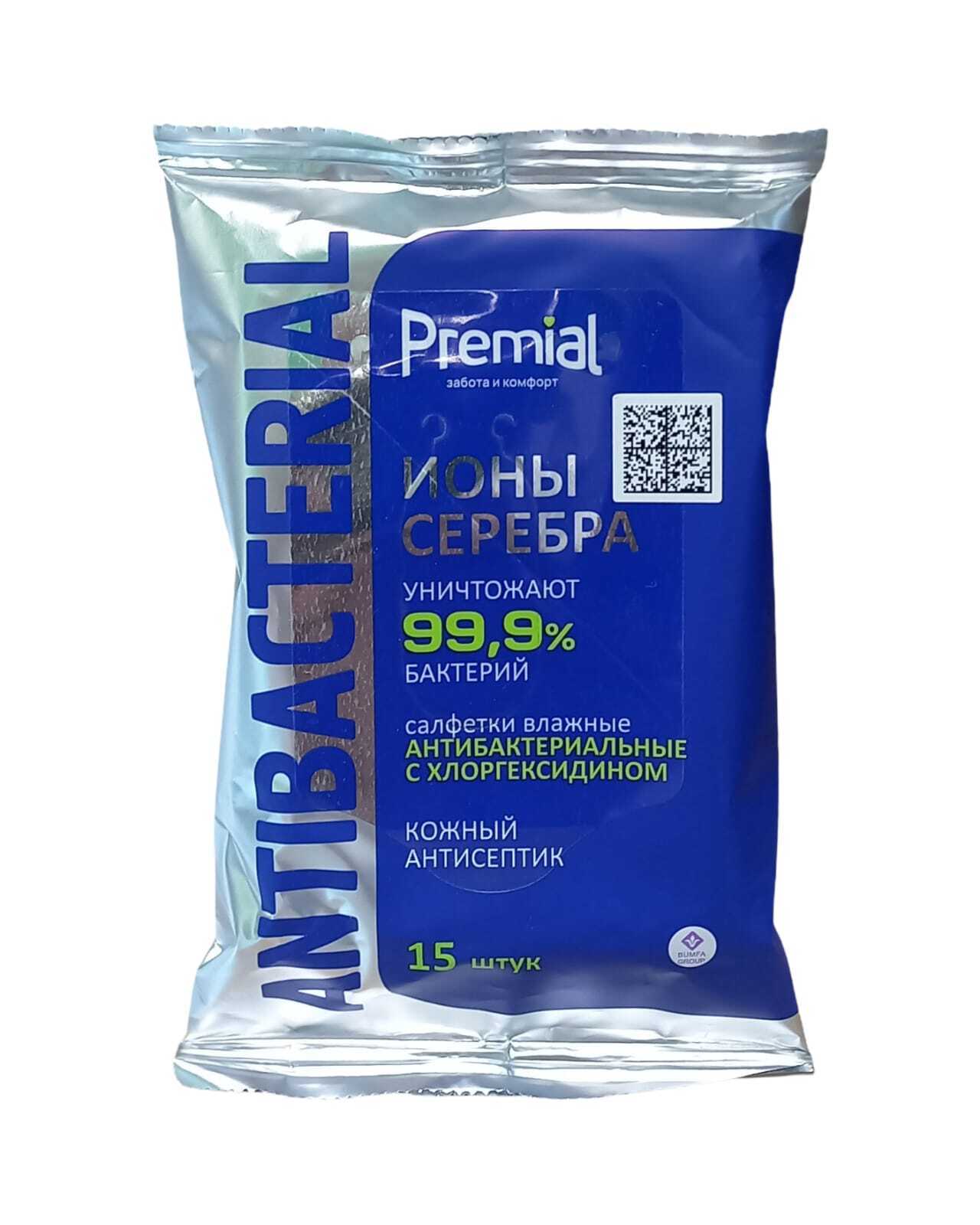 Влажные Салфетки "Premial" антибактериальные 15шт